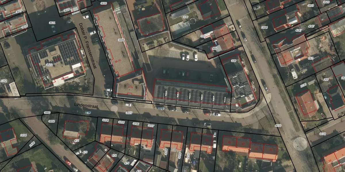Het perceel waarop Lindenstraat 37 staat heeft een oppervlakte van 2961 m². Dit is een zeer groot perceel. De perceeloppervlakte wordt geregistreerd door het Kadaster. Gedetailleerde informatie over de maten van dit perceel kunt u vinden in het rapport Kadastrale kaart met maatvoering van Lindenstraat 37.