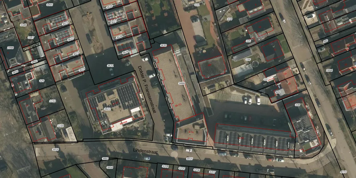 Het perceel waarop Lindenstraat 5-D staat heeft een oppervlakte van 2961 m². Dit is een zeer groot perceel. De perceeloppervlakte wordt geregistreerd door het Kadaster. Gedetailleerde informatie over de maten van dit perceel kunt u vinden in het rapport Kadastrale kaart met maatvoering van Lindenstraat 5-D.