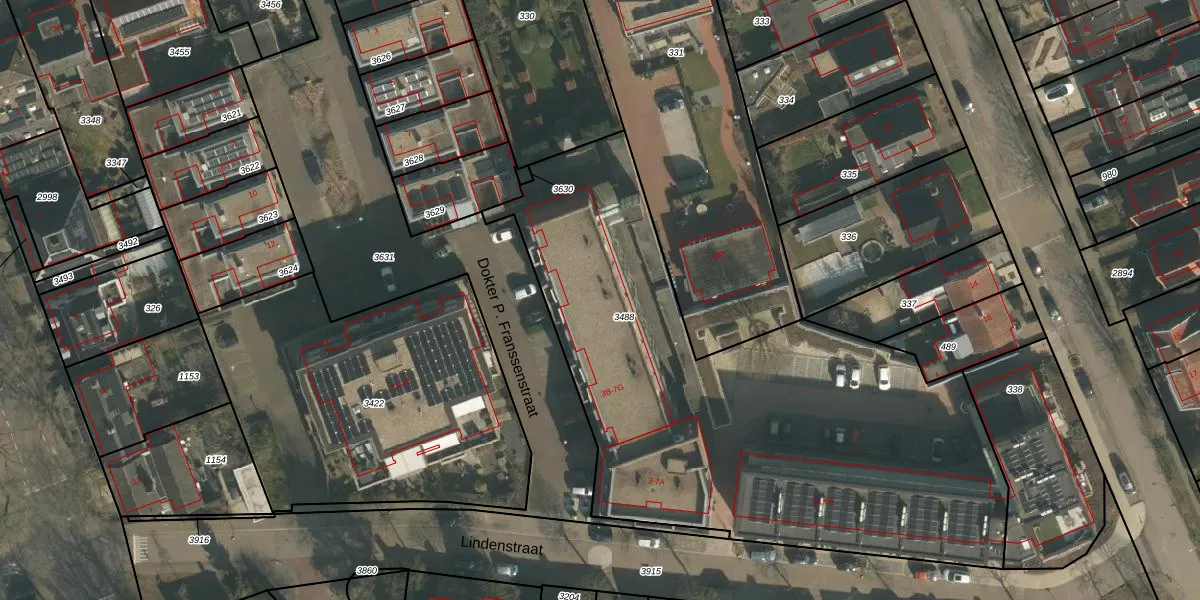 Het perceel waarop Lindenstraat 5-E staat heeft een oppervlakte van 2961 m². Dit is een zeer groot perceel. De perceeloppervlakte wordt geregistreerd door het Kadaster. Gedetailleerde informatie over de maten van dit perceel kunt u vinden in het rapport Kadastrale kaart met maatvoering van Lindenstraat 5-E.