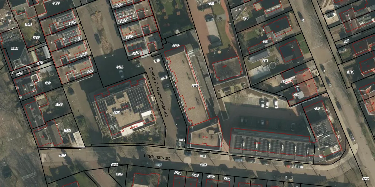 Het perceel waarop Lindenstraat 7-D staat heeft een oppervlakte van 2961 m². Dit is een zeer groot perceel. De perceeloppervlakte wordt geregistreerd door het Kadaster. Gedetailleerde informatie over de maten van dit perceel kunt u vinden in het rapport Kadastrale kaart met maatvoering van Lindenstraat 7-D.