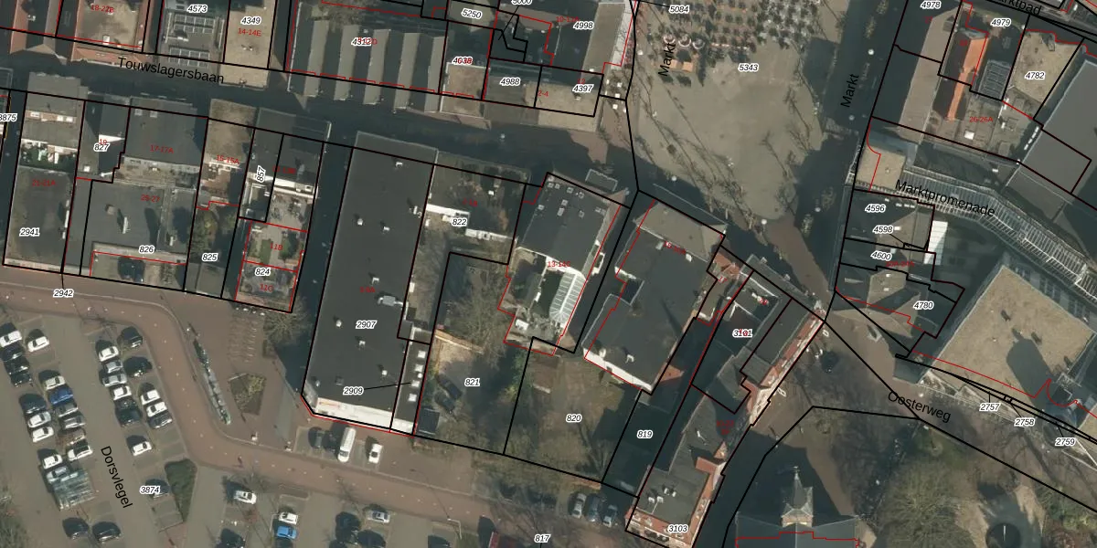 Het perceel waarop Markt 14-B staat heeft een oppervlakte van 1015 m². Dit is een zeer groot perceel. De perceeloppervlakte wordt geregistreerd door het Kadaster. Gedetailleerde informatie over de maten van dit perceel kunt u vinden in het rapport Kadastrale kaart met maatvoering van Markt 14-B.