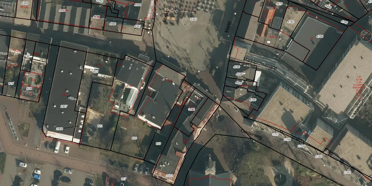 Het perceel waarop Markt 17 staat heeft een oppervlakte van 290 m². Dit is een middelgroot perceel. De perceeloppervlakte wordt geregistreerd door het Kadaster. Gedetailleerde informatie over de maten van dit perceel kunt u vinden in het rapport Kadastrale kaart met maatvoering van Markt 17.