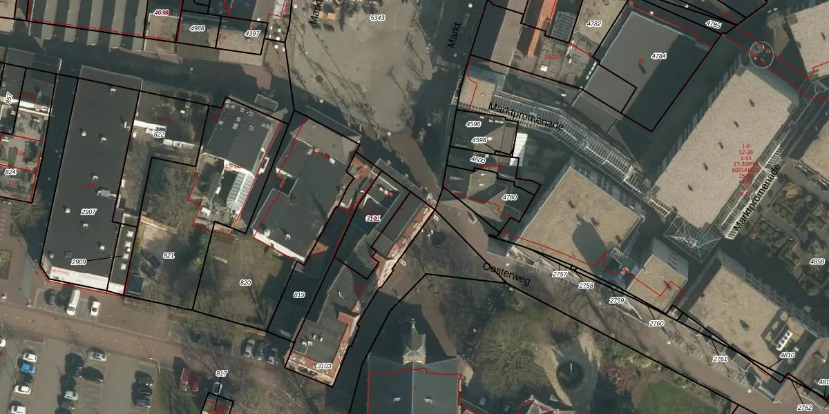 Het perceel waarop Markt 19 staat heeft een oppervlakte van 506 m². Dit is een groot perceel. De perceeloppervlakte wordt geregistreerd door het Kadaster. Gedetailleerde informatie over de maten van dit perceel kunt u vinden in het rapport Kadastrale kaart met maatvoering van Markt 19.