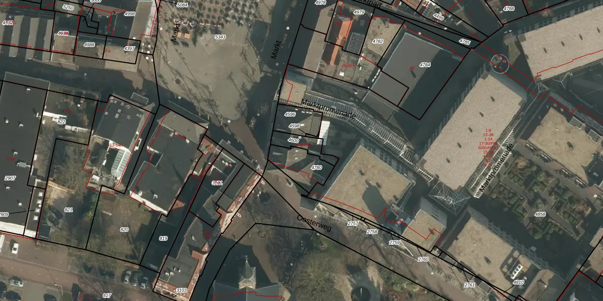 Het perceel waarop Markt 22 staat heeft een oppervlakte van 196 m². Dit is een middelgroot perceel. De perceeloppervlakte wordt geregistreerd door het Kadaster. Gedetailleerde informatie over de maten van dit perceel kunt u vinden in het rapport Kadastrale kaart met maatvoering van Markt 22.