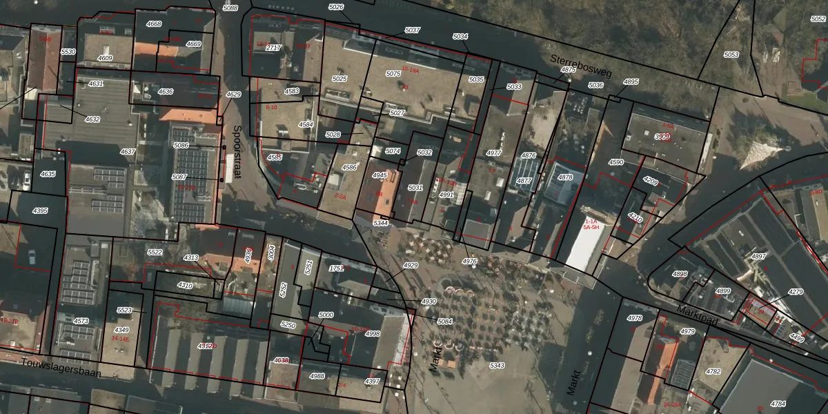 Het perceel waarop Markt 8-A staat heeft een oppervlakte van 162 m². Dit is een middelgroot perceel. De perceeloppervlakte wordt geregistreerd door het Kadaster. Gedetailleerde informatie over de maten van dit perceel kunt u vinden in het rapport Kadastrale kaart met maatvoering van Markt 8-A.