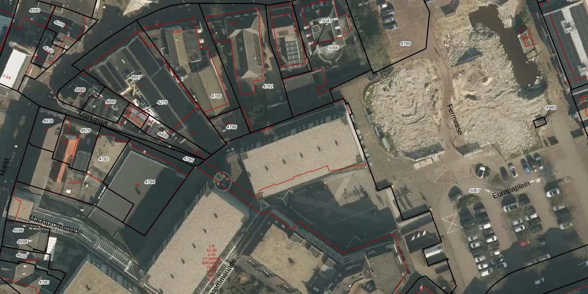 Het perceel waarop Marktpad 17 staat heeft een oppervlakte van 8469 m². Dit is een zeer groot perceel. De perceeloppervlakte wordt geregistreerd door het Kadaster. Gedetailleerde informatie over de maten van dit perceel kunt u vinden in het rapport Kadastrale kaart met maatvoering van Marktpad 17.