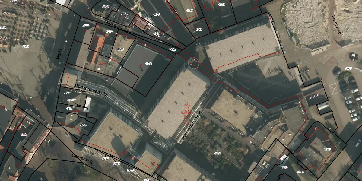Het perceel waarop Marktpad 18 staat heeft een oppervlakte van 8469 m². Dit is een zeer groot perceel. De perceeloppervlakte wordt geregistreerd door het Kadaster. Gedetailleerde informatie over de maten van dit perceel kunt u vinden in het rapport Kadastrale kaart met maatvoering van Marktpad 18.