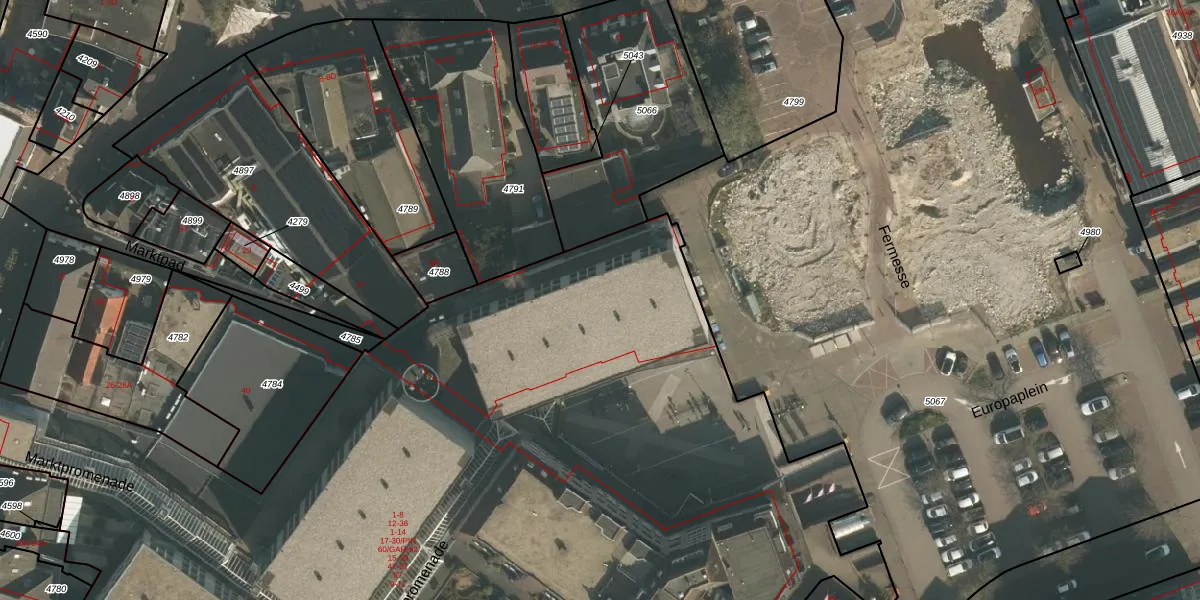 Het perceel waarop Marktpad 19 staat heeft een oppervlakte van 8469 m². Dit is een zeer groot perceel. De perceeloppervlakte wordt geregistreerd door het Kadaster. Gedetailleerde informatie over de maten van dit perceel kunt u vinden in het rapport Kadastrale kaart met maatvoering van Marktpad 19.