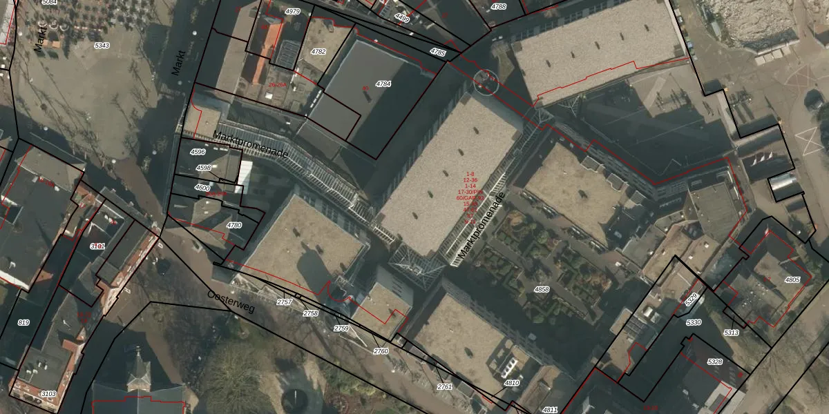 Het perceel waarop Marktpad 24 staat heeft een oppervlakte van 8469 m². Dit is een zeer groot perceel. De perceeloppervlakte wordt geregistreerd door het Kadaster. Gedetailleerde informatie over de maten van dit perceel kunt u vinden in het rapport Kadastrale kaart met maatvoering van Marktpad 24.