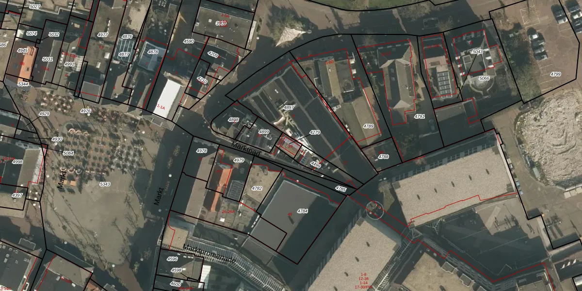Het perceel waarop Marktpad 29 staat heeft een oppervlakte van 47 m². Dit is een klein perceel. De perceeloppervlakte wordt geregistreerd door het Kadaster. Gedetailleerde informatie over de maten van dit perceel kunt u vinden in het rapport Kadastrale kaart met maatvoering van Marktpad 29.