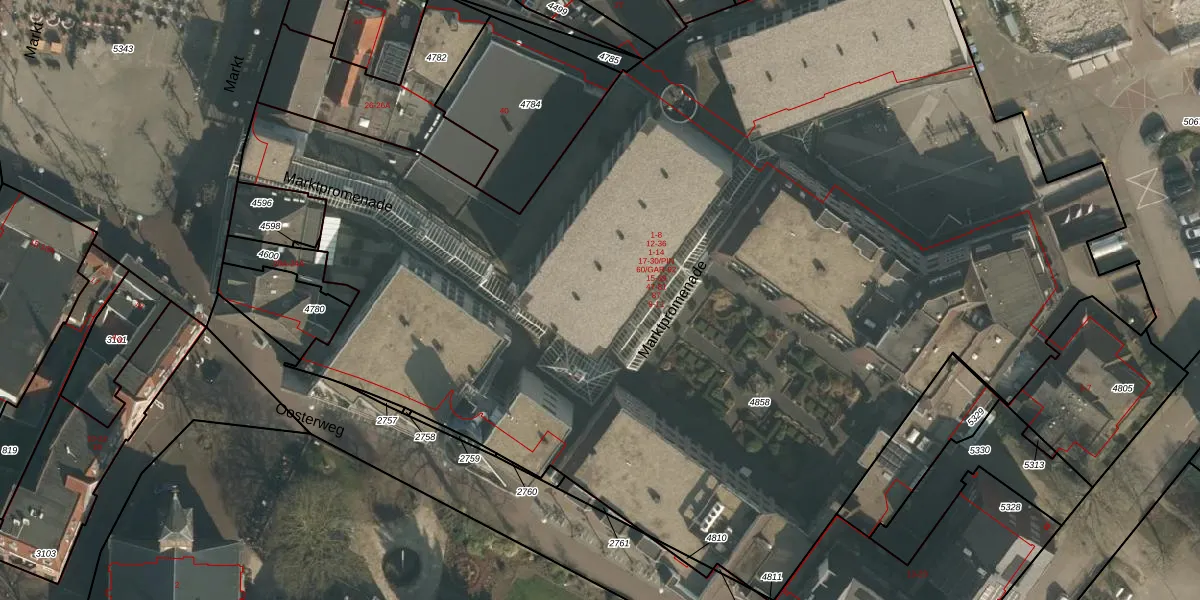 Het perceel waarop Marktpad 36 staat heeft een oppervlakte van 8469 m². Dit is een zeer groot perceel. De perceeloppervlakte wordt geregistreerd door het Kadaster. Gedetailleerde informatie over de maten van dit perceel kunt u vinden in het rapport Kadastrale kaart met maatvoering van Marktpad 36.
