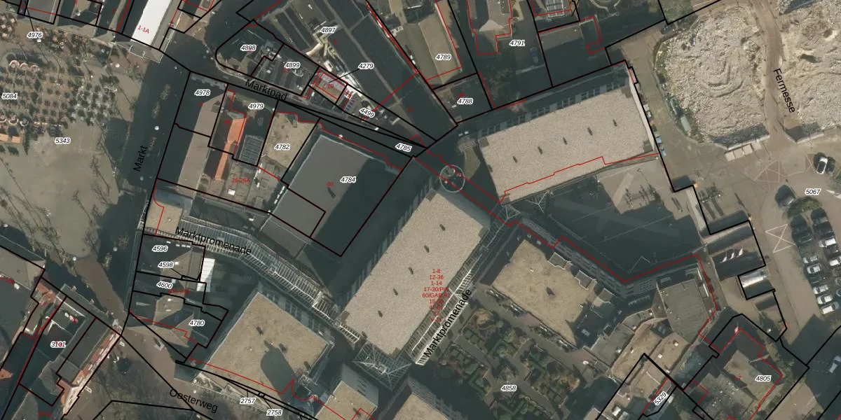 Het perceel waarop Marktpad 4 staat heeft een oppervlakte van 8469 m². Dit is een zeer groot perceel. De perceeloppervlakte wordt geregistreerd door het Kadaster. Gedetailleerde informatie over de maten van dit perceel kunt u vinden in het rapport Kadastrale kaart met maatvoering van Marktpad 4.