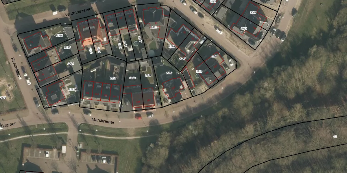 Gebruik de zoekbalk of klik op een perceel voor informatie over de adressen binnen dit perceel.