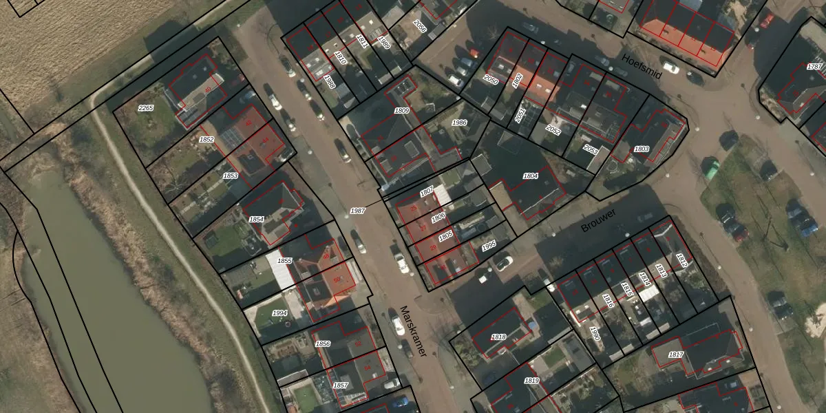 Het perceel waarop Marskramer 25 staat heeft een oppervlakte van 169 m². Dit is een middelgroot perceel. De perceeloppervlakte wordt geregistreerd door het Kadaster. Gedetailleerde informatie over de maten van dit perceel kunt u vinden in het rapport Kadastrale kaart met maatvoering van Marskramer 25.