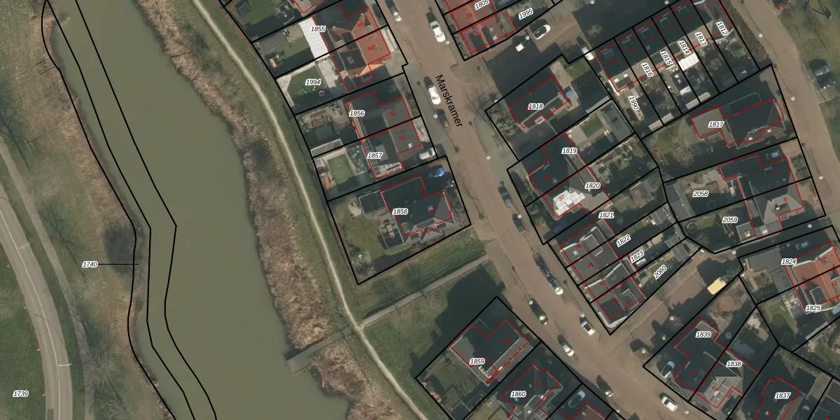 Het perceel waarop Marskramer 56 staat heeft een oppervlakte van 584 m². Dit is een groot perceel. De perceeloppervlakte wordt geregistreerd door het Kadaster. Gedetailleerde informatie over de maten van dit perceel kunt u vinden in het rapport Kadastrale kaart met maatvoering van Marskramer 56.
