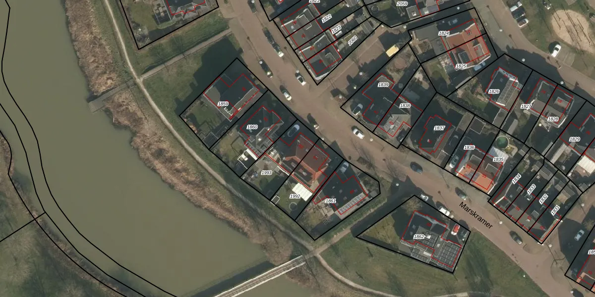 Het perceel waarop Marskramer 62 staat heeft een oppervlakte van 305 m². Dit is een groot perceel. De perceeloppervlakte wordt geregistreerd door het Kadaster. Gedetailleerde informatie over de maten van dit perceel kunt u vinden in het rapport Kadastrale kaart met maatvoering van Marskramer 62.
