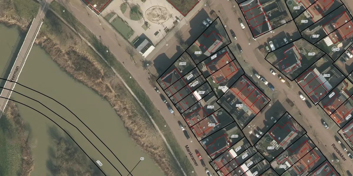 Het perceel waarop Marskramer 83 staat heeft een oppervlakte van 119 m². Dit is een middelgroot perceel. De perceeloppervlakte wordt geregistreerd door het Kadaster. Gedetailleerde informatie over de maten van dit perceel kunt u vinden in het rapport Kadastrale kaart met maatvoering van Marskramer 83.