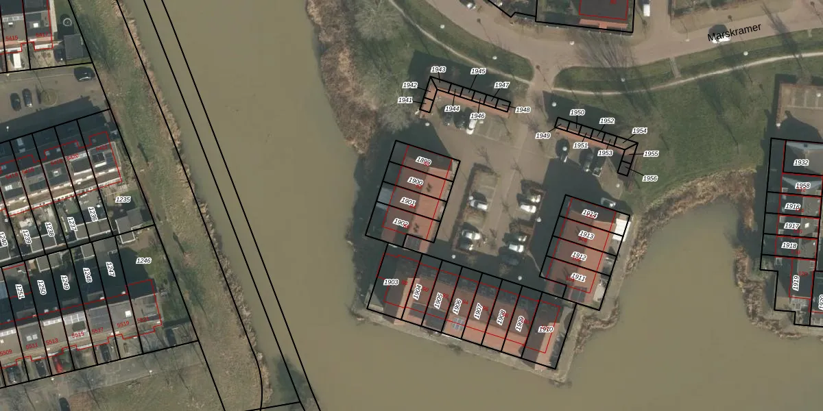 Gebruik de zoekbalk of klik op een perceel voor informatie over de adressen binnen dit perceel.