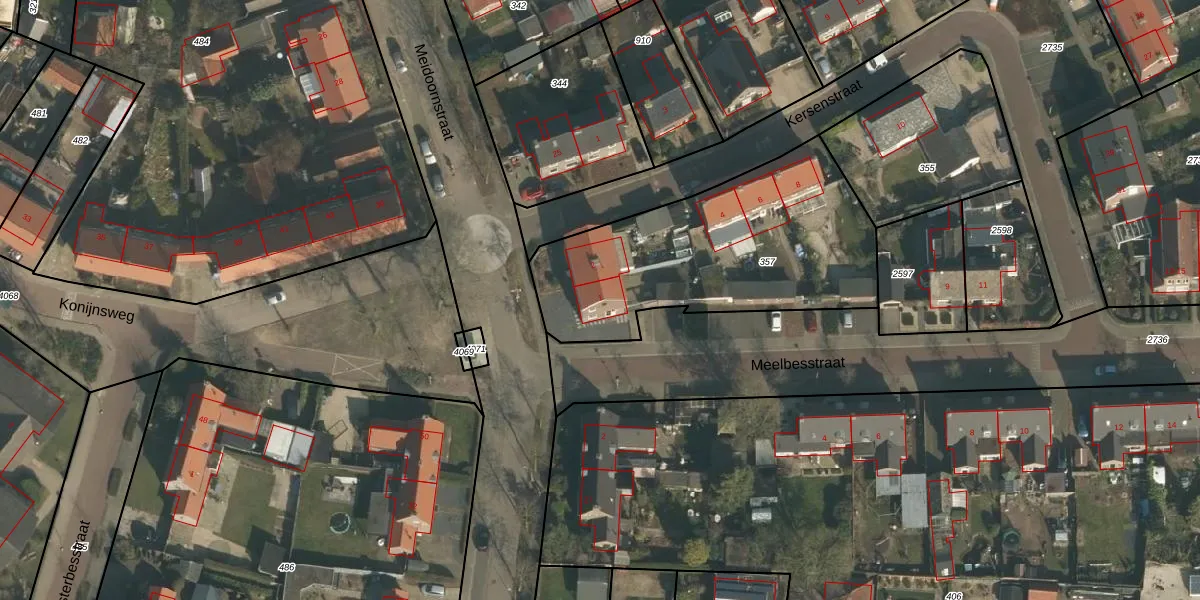 Meelbesstraat 1 is gelegen op kadastraal perceel WCN00I357. Deze kadastrale aanduiding is uniek en wordt gebruikt door het Kadaster om eigendomsrechten en andere zakelijke rechten vast te leggen. Het perceel maakt onderdeel uit van de kadastrale gemeente Wijchen.
