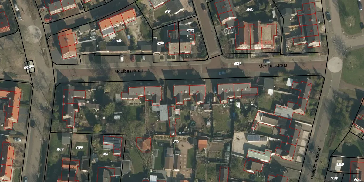 Het perceel waarop Meelbesstraat 8 staat heeft een oppervlakte van 8440 m². Dit is een zeer groot perceel. De perceeloppervlakte wordt geregistreerd door het Kadaster. Gedetailleerde informatie over de maten van dit perceel kunt u vinden in het rapport Kadastrale kaart met maatvoering van Meelbesstraat 8.