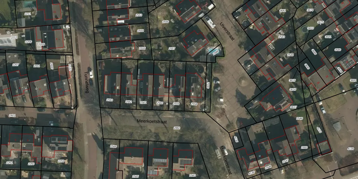 Meerkoetstraat 9 is gelegen op kadastraal perceel WCN00I2559. Deze kadastrale aanduiding is uniek en wordt gebruikt door het Kadaster om eigendomsrechten en andere zakelijke rechten vast te leggen. Het perceel maakt onderdeel uit van de kadastrale gemeente Wijchen.