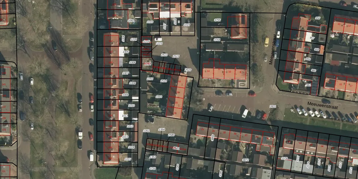 Meeuwenstraat 18 is gelegen op kadastraal perceel WCN00I1003. Deze kadastrale aanduiding is uniek en wordt gebruikt door het Kadaster om eigendomsrechten en andere zakelijke rechten vast te leggen. Het perceel maakt onderdeel uit van de kadastrale gemeente Wijchen.