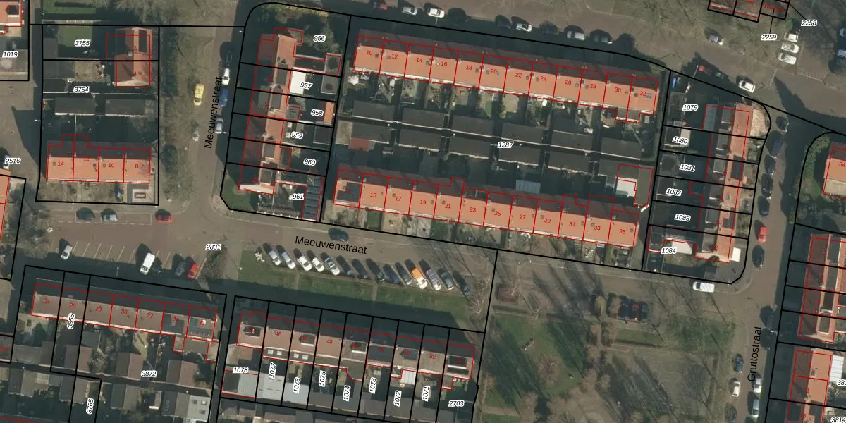 Het perceel waarop Meeuwenstraat 19 staat heeft een oppervlakte van 3835 m². Dit is een zeer groot perceel. De perceeloppervlakte wordt geregistreerd door het Kadaster. Gedetailleerde informatie over de maten van dit perceel kunt u vinden in het rapport Kadastrale kaart met maatvoering van Meeuwenstraat 19.