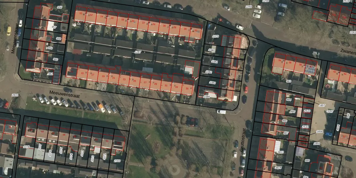 Het perceel waarop Meeuwenstraat 33 staat heeft een oppervlakte van 3835 m². Dit is een zeer groot perceel. De perceeloppervlakte wordt geregistreerd door het Kadaster. Gedetailleerde informatie over de maten van dit perceel kunt u vinden in het rapport Kadastrale kaart met maatvoering van Meeuwenstraat 33.