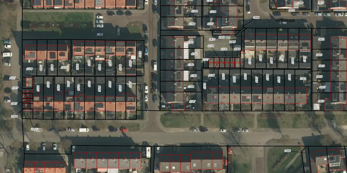 Gebruik de zoekbalk of klik op een perceel voor informatie over de adressen binnen dit perceel.