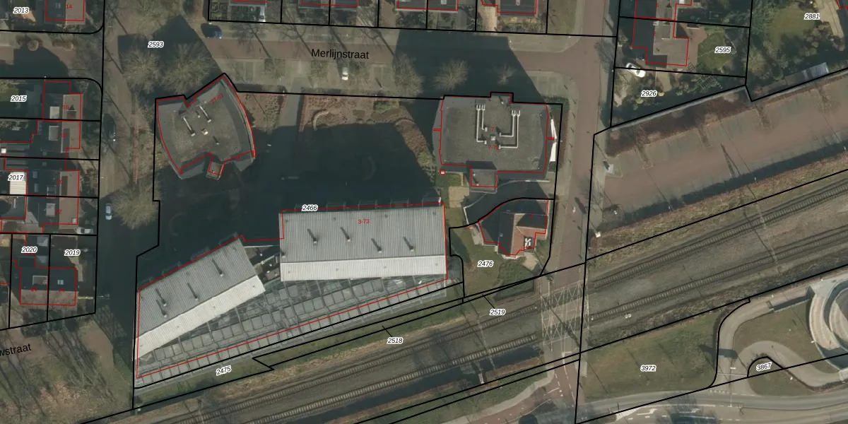 Het perceel waarop Merlijnstraat 11 staat heeft een oppervlakte van 4775 m². Dit is een zeer groot perceel. De perceeloppervlakte wordt geregistreerd door het Kadaster. Gedetailleerde informatie over de maten van dit perceel kunt u vinden in het rapport Kadastrale kaart met maatvoering van Merlijnstraat 11.