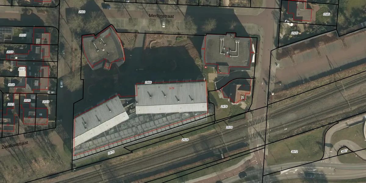 Het perceel waarop Merlijnstraat 19 staat heeft een oppervlakte van 4775 m². Dit is een zeer groot perceel. De perceeloppervlakte wordt geregistreerd door het Kadaster. Gedetailleerde informatie over de maten van dit perceel kunt u vinden in het rapport Kadastrale kaart met maatvoering van Merlijnstraat 19.