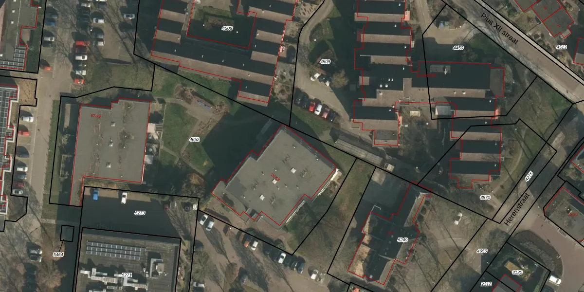 Het perceel waarop het adres ligt is WCN00-H-4652. De afkorting 'WCN00' staat voor kadastrale gemeente Wijchen. De oppervlakte van het perceel is 3735 m². Dat is groter dan gemiddeld in Wijchen, waar de gemiddelde perceeloppervlakte op 1828,2 m² ligt. Het grootste perceel in de kadastrale gemeente is 66,4 ha. Het kleinste perceel heeft een oppervlakte van 0 m². Er zijn 31 adressen aanwezig op het perceel. De laatste wijziging in het de Basisregistratie Kadaster (BRK) was op 07-08-2000.