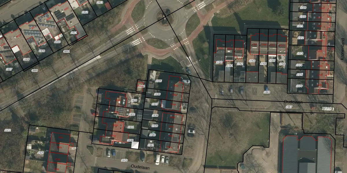 Gebruik de zoekbalk of klik op een perceel voor informatie over de adressen binnen dit perceel.