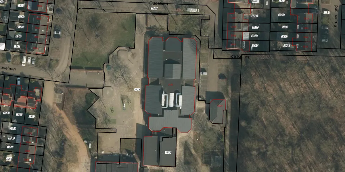 Oudelaan 2102 is gelegen op kadastraal perceel WCN00F3774. Deze kadastrale aanduiding is uniek en wordt gebruikt door het Kadaster om eigendomsrechten en andere zakelijke rechten vast te leggen. Het perceel maakt onderdeel uit van de kadastrale gemeente Wijchen.