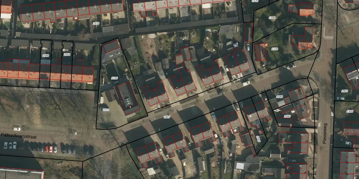 Het perceel waarop Passedwarsstraat 16 staat heeft een oppervlakte van 7392 m². Dit is een zeer groot perceel. De perceeloppervlakte wordt geregistreerd door het Kadaster. Gedetailleerde informatie over de maten van dit perceel kunt u vinden in het rapport Kadastrale kaart met maatvoering van Passedwarsstraat 16.
