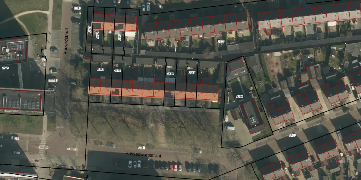 Het perceel waarop Passedwarsstraat 30 staat heeft een oppervlakte van 7392 m². Dit is een zeer groot perceel. De perceeloppervlakte wordt geregistreerd door het Kadaster. Gedetailleerde informatie over de maten van dit perceel kunt u vinden in het rapport Kadastrale kaart met maatvoering van Passedwarsstraat 30.