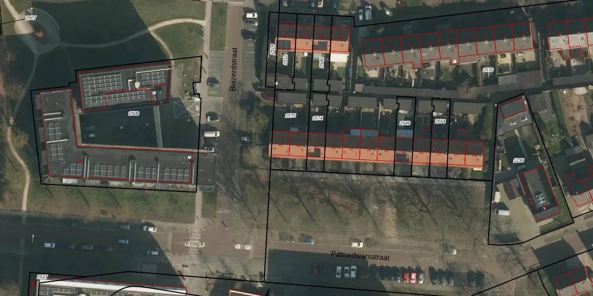 Het perceel waarop Passedwarsstraat 44 staat heeft een oppervlakte van 480 m². Dit is een groot perceel. De perceeloppervlakte wordt geregistreerd door het Kadaster. Gedetailleerde informatie over de maten van dit perceel kunt u vinden in het rapport Kadastrale kaart met maatvoering van Passedwarsstraat 44.