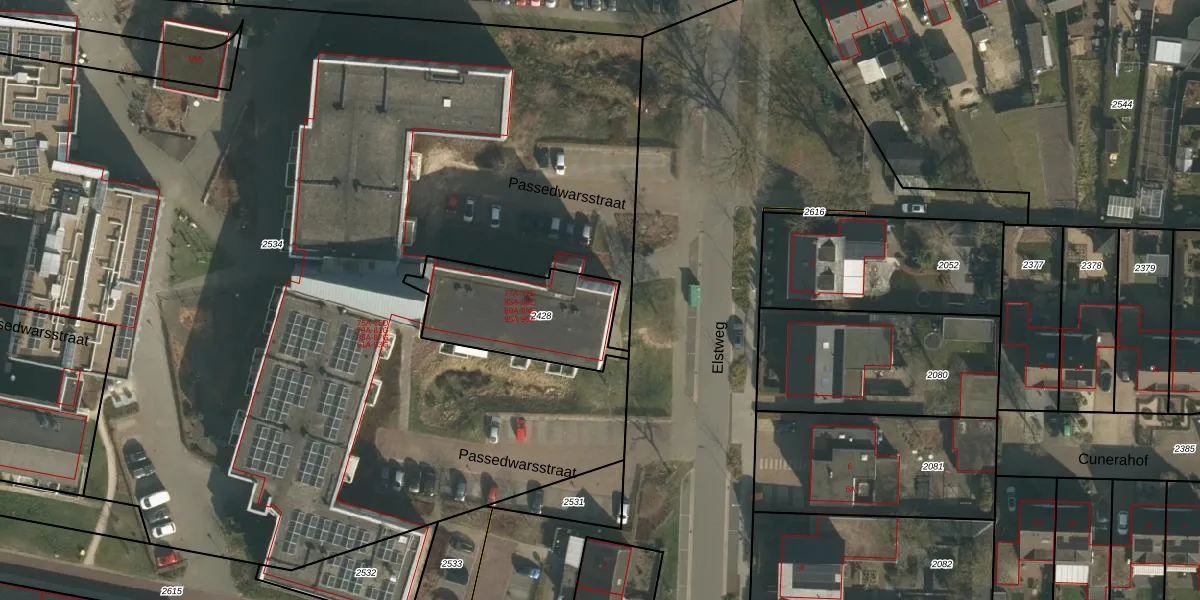 Het perceel waarop Passedwarsstraat 77-E staat heeft een oppervlakte van 460 m². Dit is een groot perceel. De perceeloppervlakte wordt geregistreerd door het Kadaster. Gedetailleerde informatie over de maten van dit perceel kunt u vinden in het rapport Kadastrale kaart met maatvoering van Passedwarsstraat 77-E.