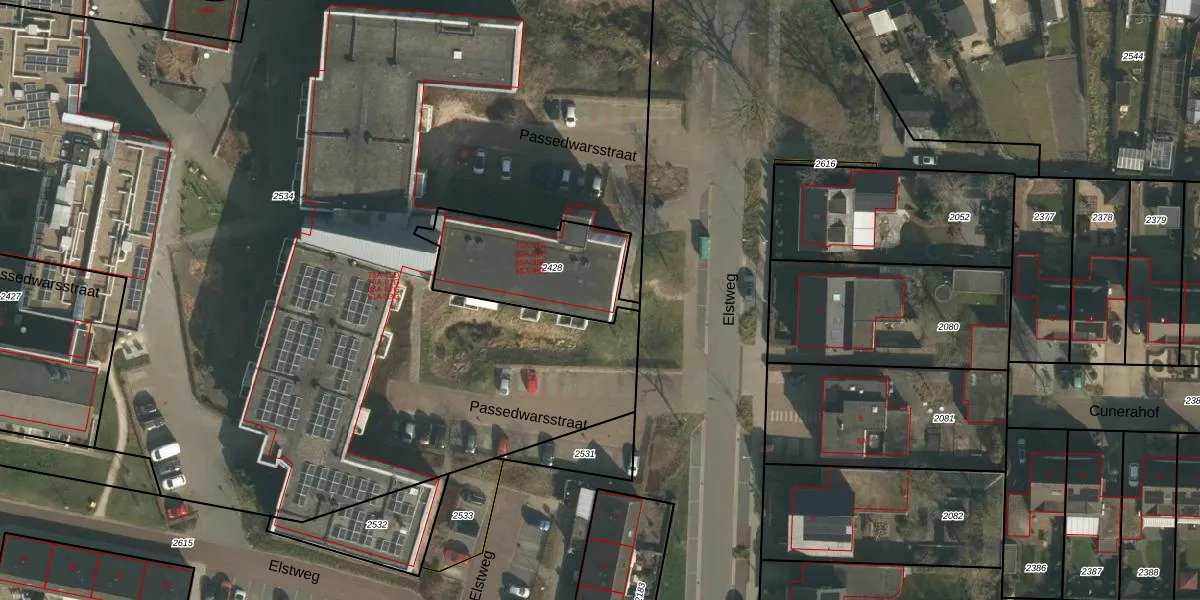 Passedwarsstraat 95-E is gelegen op kadastraal perceel WCN00G2428. Deze kadastrale aanduiding is uniek en wordt gebruikt door het Kadaster om eigendomsrechten en andere zakelijke rechten vast te leggen. Het perceel maakt onderdeel uit van de kadastrale gemeente Wijchen.