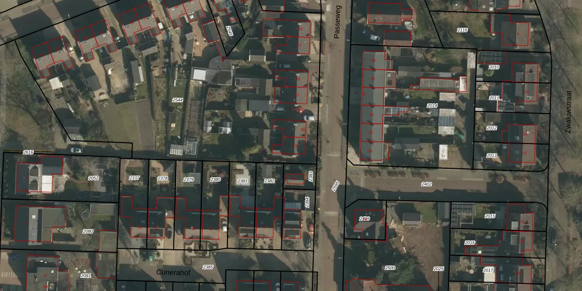 Passeweg 43 is gelegen op kadastraal perceel WCN00G2544. Deze kadastrale aanduiding is uniek en wordt gebruikt door het Kadaster om eigendomsrechten en andere zakelijke rechten vast te leggen. Het perceel maakt onderdeel uit van de kadastrale gemeente Wijchen.