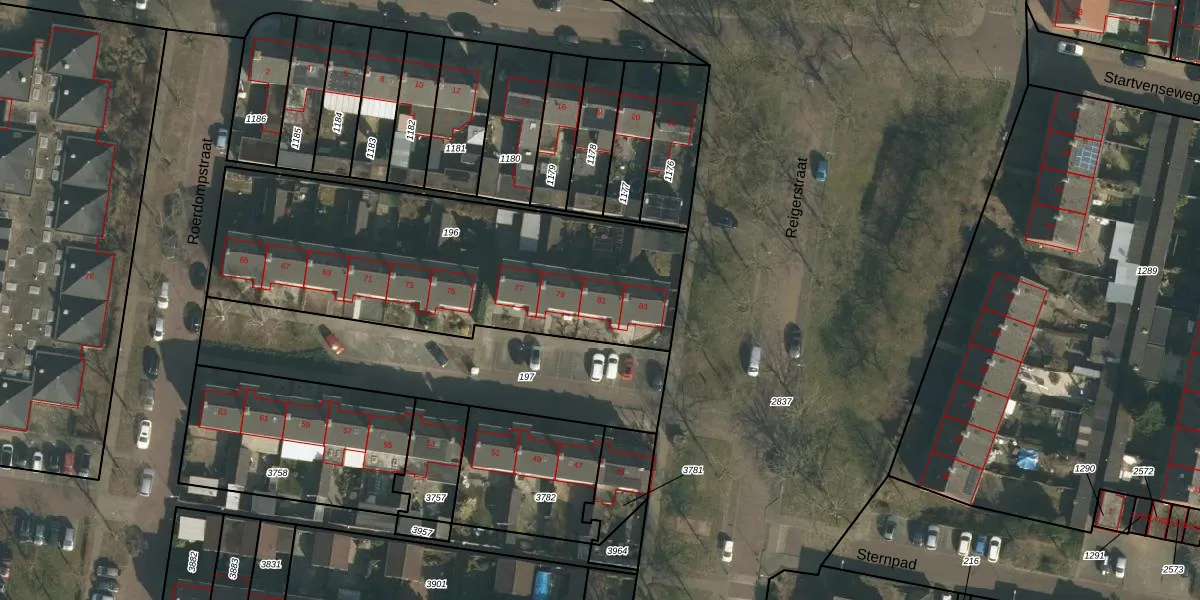 Het perceel waarop Reigerstraat 81 staat heeft een oppervlakte van 1646 m². Dit is een zeer groot perceel. De perceeloppervlakte wordt geregistreerd door het Kadaster. Gedetailleerde informatie over de maten van dit perceel kunt u vinden in het rapport Kadastrale kaart met maatvoering van Reigerstraat 81.