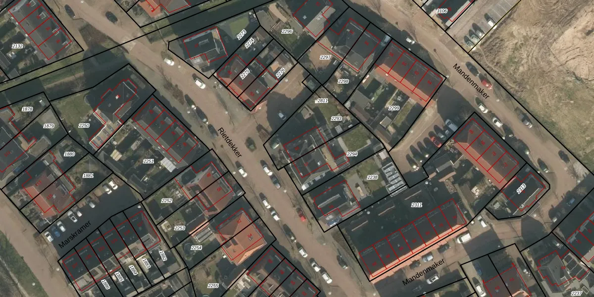Rietdekker 55 is gelegen op kadastraal perceel WCN00P2293. Deze kadastrale aanduiding is uniek en wordt gebruikt door het Kadaster om eigendomsrechten en andere zakelijke rechten vast te leggen. Het perceel maakt onderdeel uit van de kadastrale gemeente Wijchen.