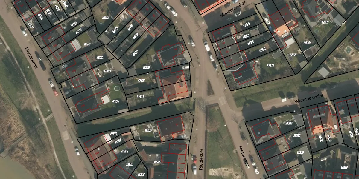 Gebruik de zoekbalk of klik op een perceel voor informatie over de adressen binnen dit perceel.