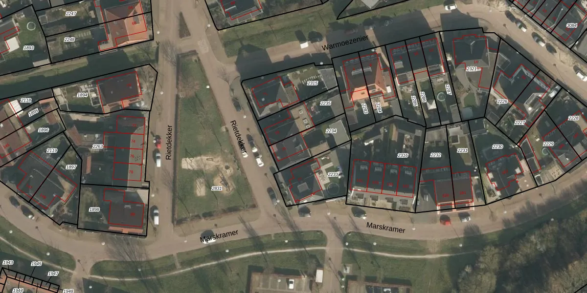 Rietdekker 75 is gelegen op kadastraal perceel WCN00P2234. Deze kadastrale aanduiding is uniek en wordt gebruikt door het Kadaster om eigendomsrechten en andere zakelijke rechten vast te leggen. Het perceel maakt onderdeel uit van de kadastrale gemeente Wijchen.