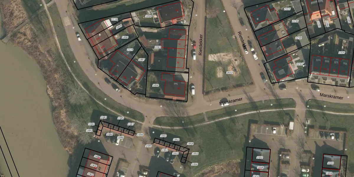 Het perceel waarop Rietdekker 80 staat heeft een oppervlakte van 373 m². Dit is een groot perceel. De perceeloppervlakte wordt geregistreerd door het Kadaster. Gedetailleerde informatie over de maten van dit perceel kunt u vinden in het rapport Kadastrale kaart met maatvoering van Rietdekker 80.
