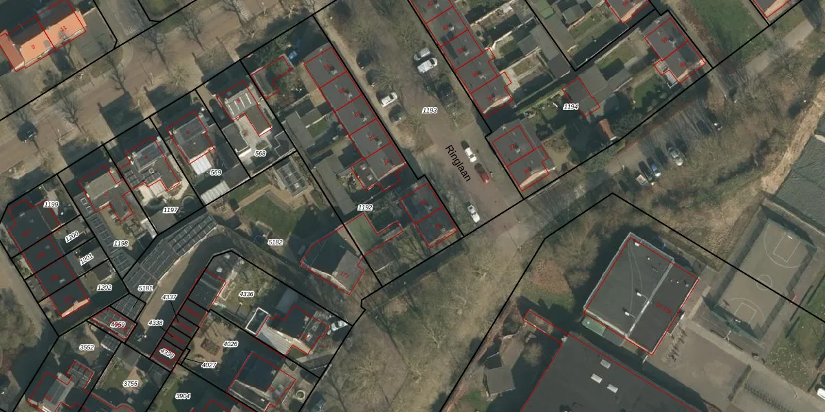 Het perceel waarop Ringlaan 26 staat heeft een oppervlakte van 1405 m². Dit is een zeer groot perceel. De perceeloppervlakte wordt geregistreerd door het Kadaster. Gedetailleerde informatie over de maten van dit perceel kunt u vinden in het rapport Kadastrale kaart met maatvoering van Ringlaan 26.