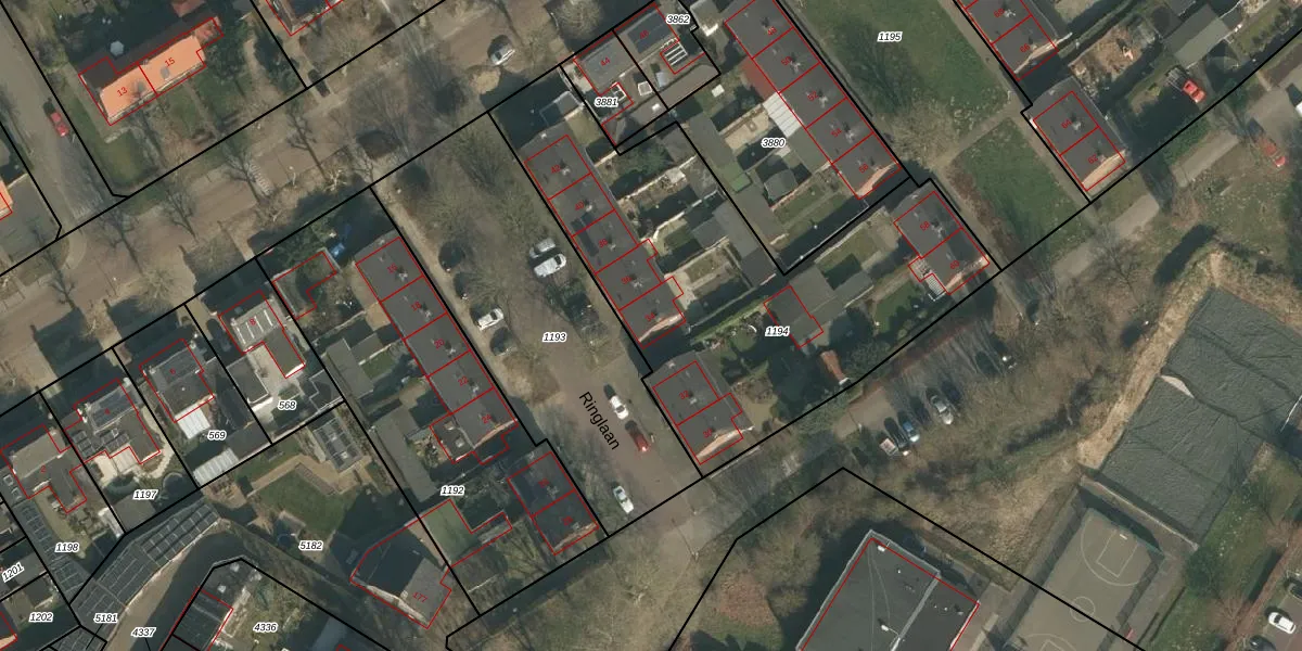 Het perceel waarop Ringlaan 34 staat heeft een oppervlakte van 2005 m². Dit is een zeer groot perceel. De perceeloppervlakte wordt geregistreerd door het Kadaster. Gedetailleerde informatie over de maten van dit perceel kunt u vinden in het rapport Kadastrale kaart met maatvoering van Ringlaan 34.
