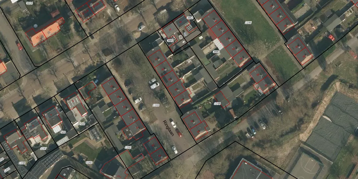 Ringlaan 36 is gelegen op kadastraal perceel WCN00I1194. Deze kadastrale aanduiding is uniek en wordt gebruikt door het Kadaster om eigendomsrechten en andere zakelijke rechten vast te leggen. Het perceel maakt onderdeel uit van de kadastrale gemeente Wijchen.