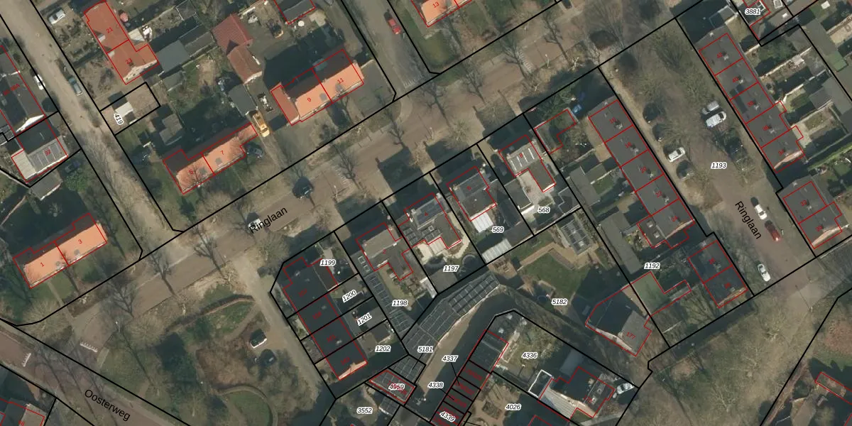 Ringlaan 4 is gelegen op kadastraal perceel WCN00I1197. Deze kadastrale aanduiding is uniek en wordt gebruikt door het Kadaster om eigendomsrechten en andere zakelijke rechten vast te leggen. Het perceel maakt onderdeel uit van de kadastrale gemeente Wijchen.