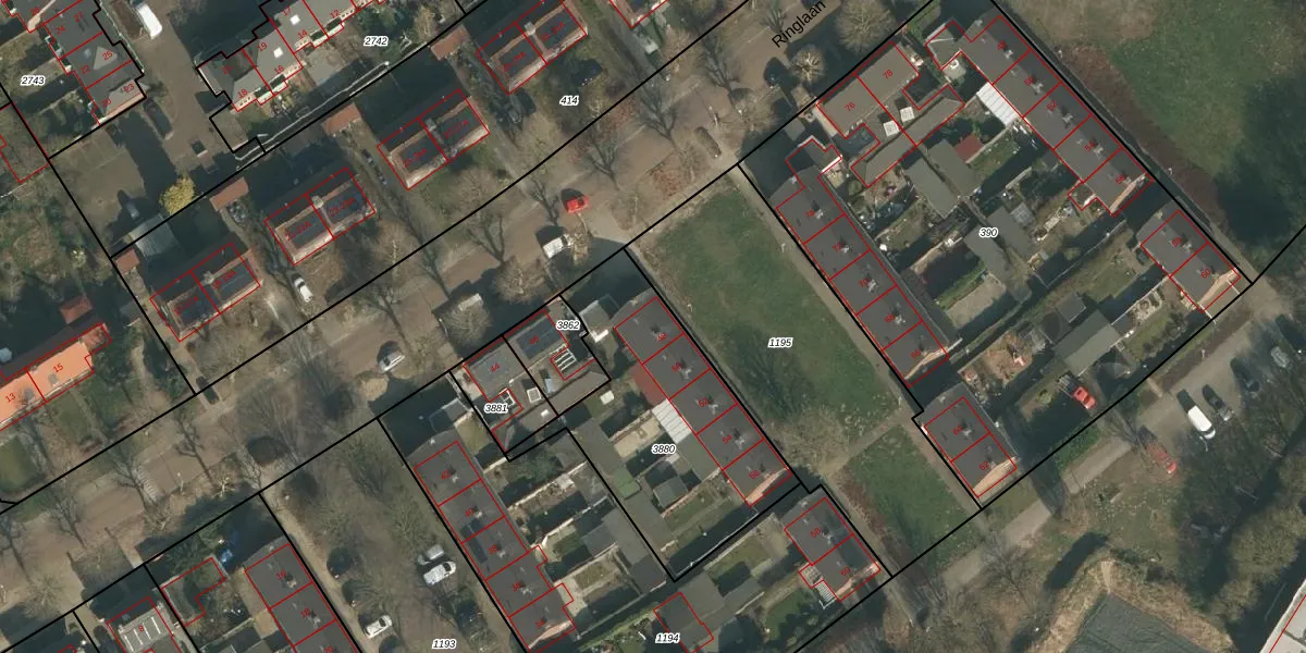 Ringlaan 48 is gelegen op kadastraal perceel WCN00I3880. Deze kadastrale aanduiding is uniek en wordt gebruikt door het Kadaster om eigendomsrechten en andere zakelijke rechten vast te leggen. Het perceel maakt onderdeel uit van de kadastrale gemeente Wijchen.